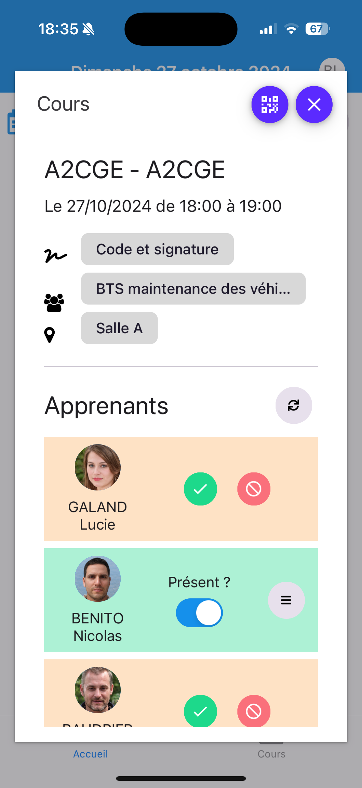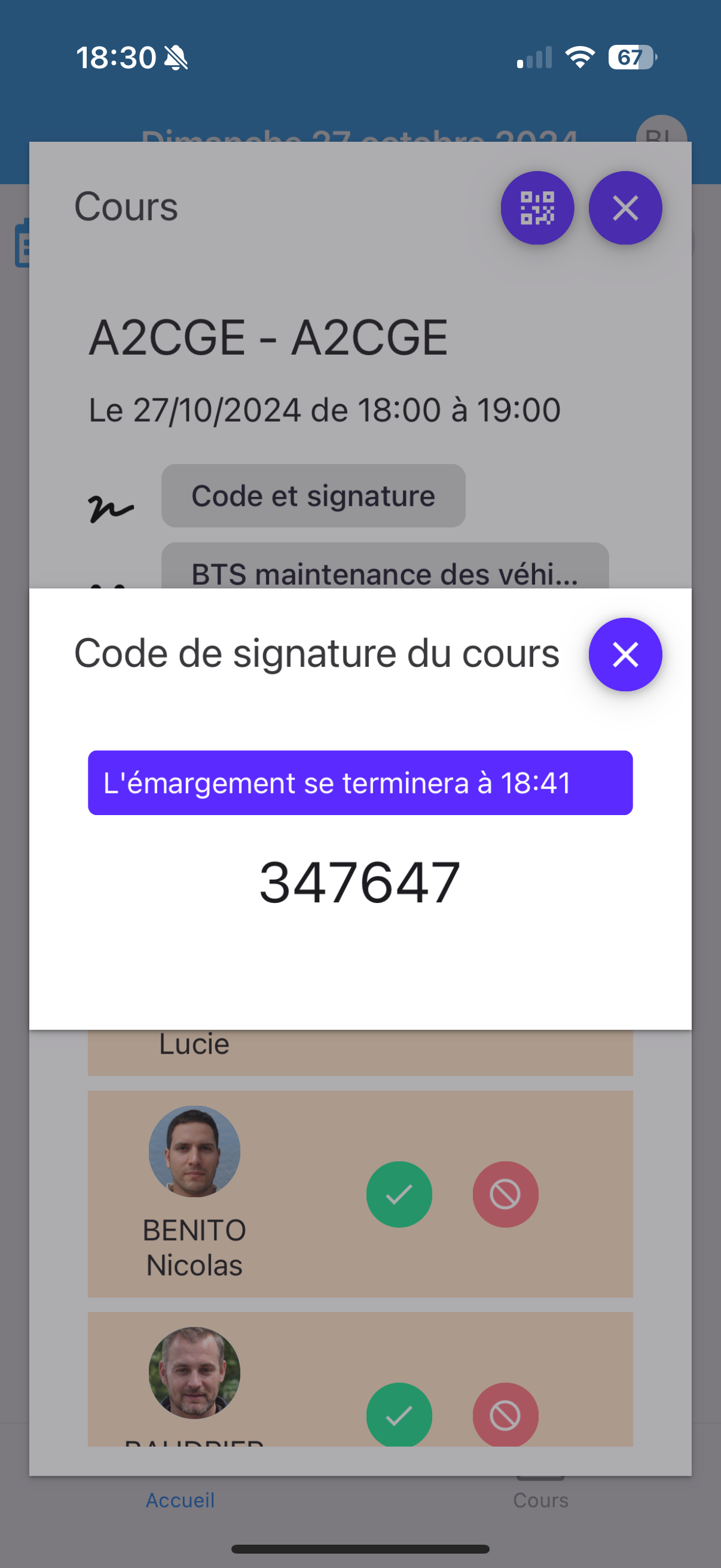 Les apprenants saisissent ce code pour accéder à la zone d’émargement sur leur application mobile.